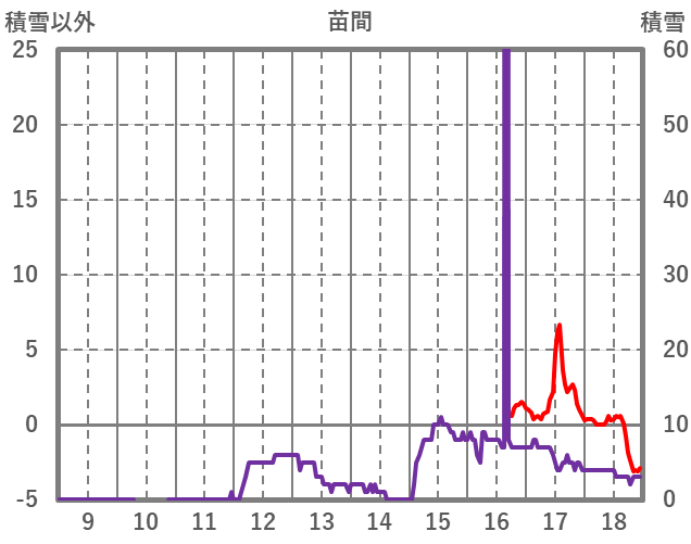 | 日 | 時 | 気温 | 降水 | 風向/風速 | 日照 | 積雪 | 降雪 |