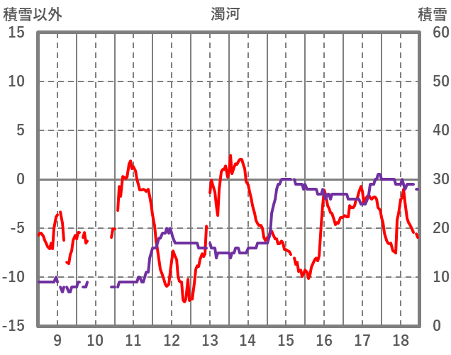 | 日 | 時 | 気温 | 降水 | 風向/風速 | 日照 | 積雪 | 降雪 |