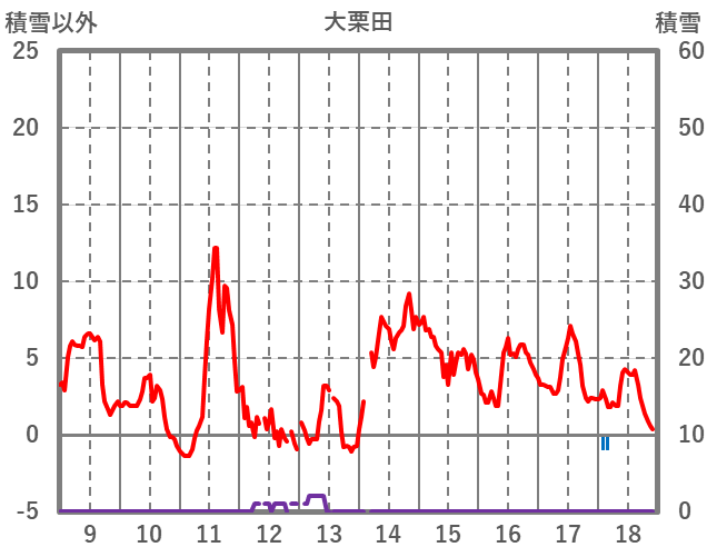 | 日 | 時 | 気温 | 降水 | 風向/風速 | 日照 | 積雪 | 降雪 |