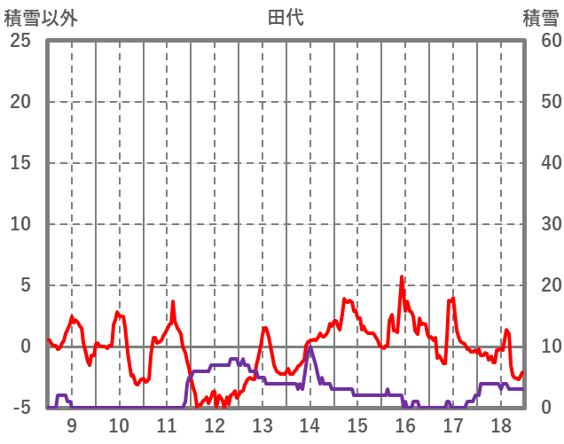 | 日 | 時 | 気温 | 降水 | 風向/風速 | 日照 | 積雪 | 降雪 |