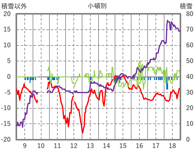 | 日 | 時 | 気温 | 降水 | 風向/風速 | 日照 | 積雪 | 降雪 |