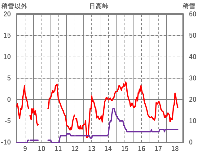 | 日 | 時 | 気温 | 降水 | 風向/風速 | 日照 | 積雪 | 降雪 |
