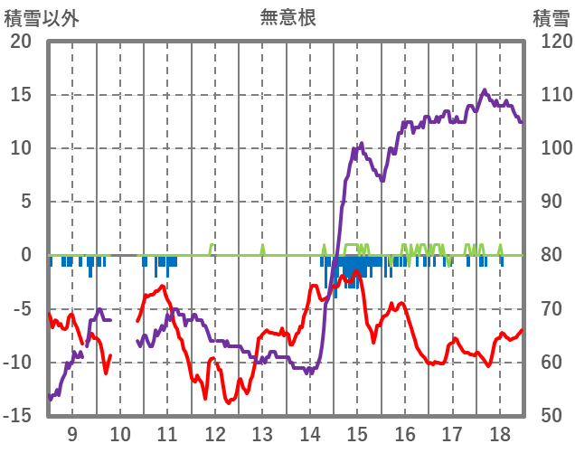 | 日 | 時 | 気温 | 降水 | 風向/風速 | 日照 | 積雪 | 降雪 |