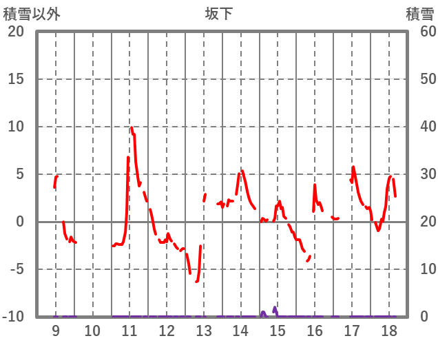 | 日 | 時 | 気温 | 降水 | 風向/風速 | 日照 | 積雪 | 降雪 |