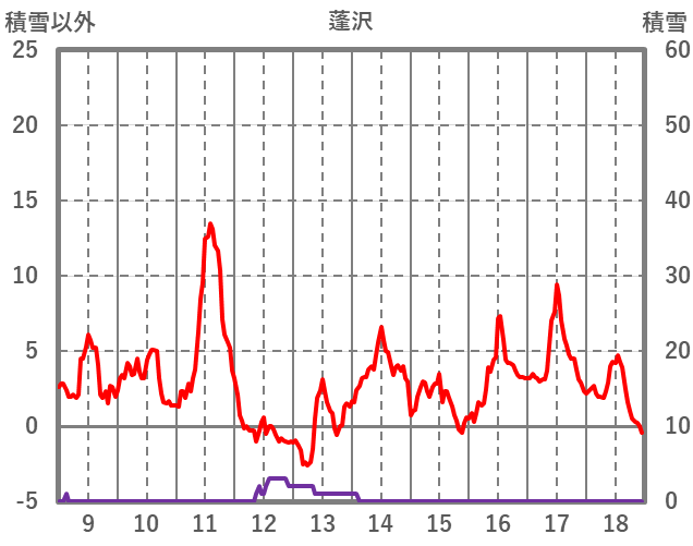 | 日 | 時 | 気温 | 降水 | 風向/風速 | 日照 | 積雪 | 降雪 |