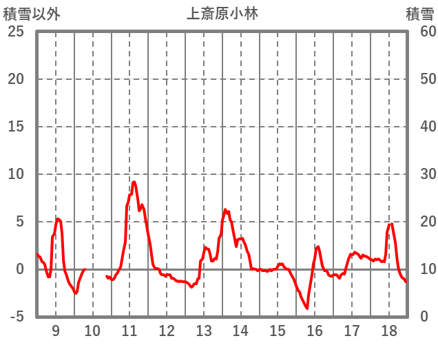 | 日 | 時 | 気温 | 降水 | 風向/風速 | 日照 | 積雪 | 降雪 |