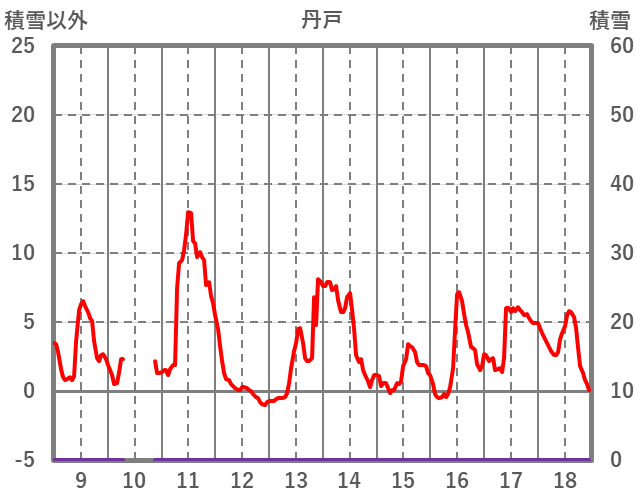 | 日 | 時 | 気温 | 降水 | 風向/風速 | 日照 | 積雪 | 降雪 |