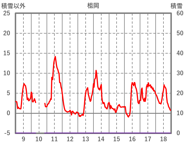 | 日 | 時 | 気温 | 降水 | 風向/風速 | 日照 | 積雪 | 降雪 |