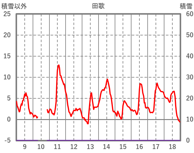 | 日 | 時 | 気温 | 降水 | 風向/風速 | 日照 | 積雪 | 降雪 |