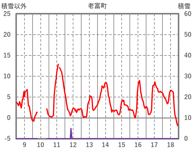| 日 | 時 | 気温 | 降水 | 風向/風速 | 日照 | 積雪 | 降雪 |