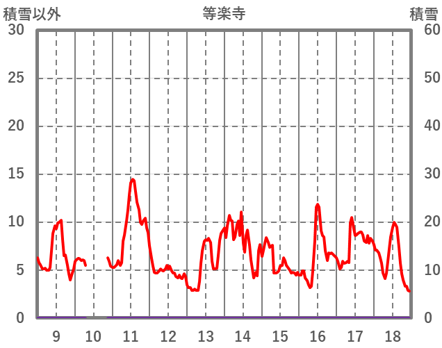 | 日 | 時 | 気温 | 降水 | 風向/風速 | 日照 | 積雪 | 降雪 |
