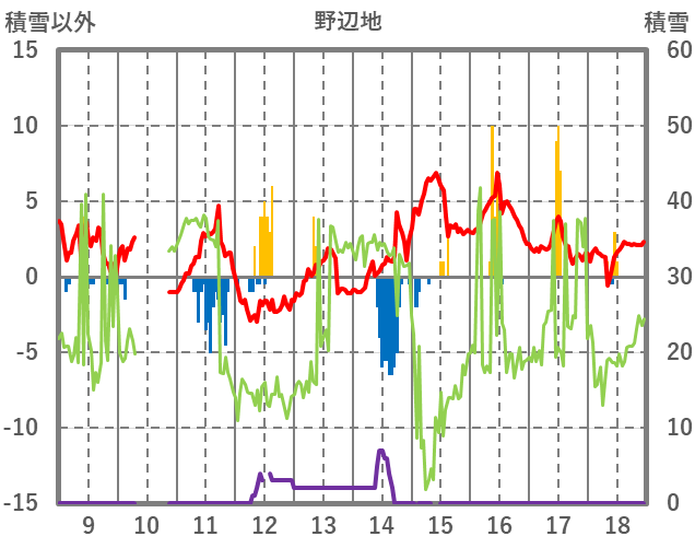 | 日 | 時 | 気温 | 降水 | 風向/風速 | 日照 | 積雪 | 降雪 |