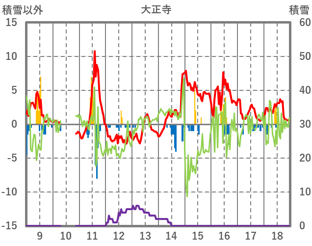 | 日 | 時 | 気温 | 降水 | 風向/風速 | 日照 | 積雪 | 降雪 |