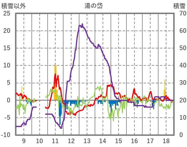 | 日 | 時 | 気温 | 降水 | 風向/風速 | 日照 | 積雪 | 降雪 |