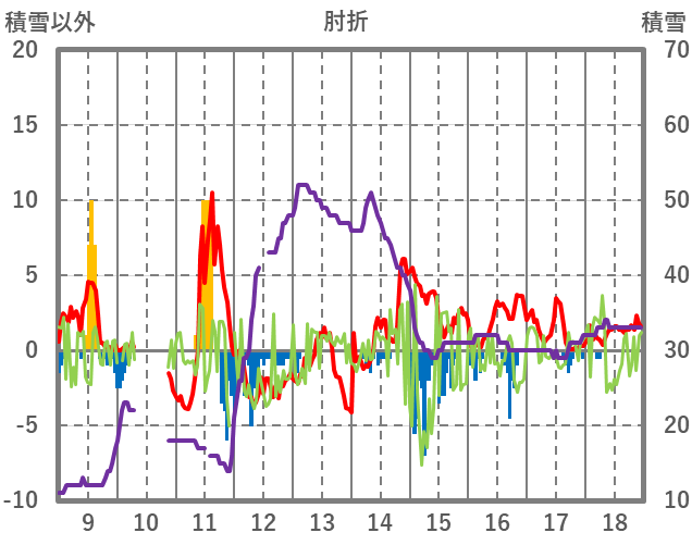 | 日 | 時 | 気温 | 降水 | 風向/風速 | 日照 | 積雪 | 降雪 |