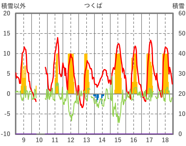 | 日 | 時 | 気温 | 降水 | 風向/風速 | 日照 | 積雪 | 降雪 |