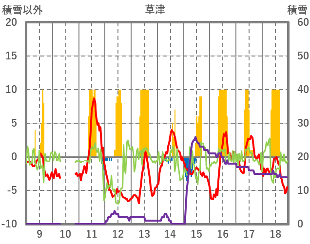 | 日 | 時 | 気温 | 降水 | 風向/風速 | 日照 | 積雪 | 降雪 |