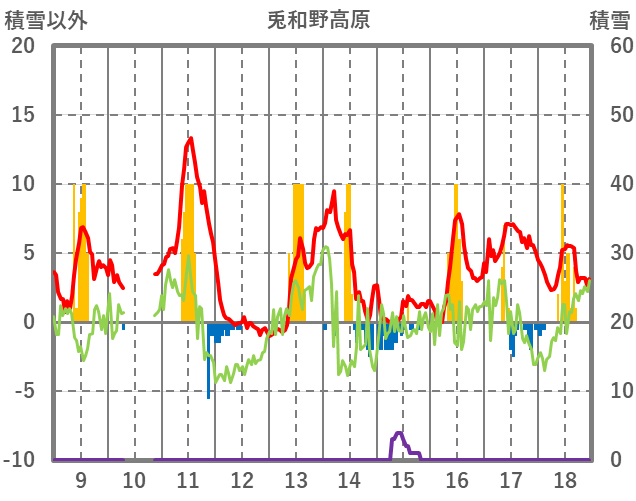 | 日 | 時 | 気温 | 降水 | 風向/風速 | 日照 | 積雪 | 降雪 |