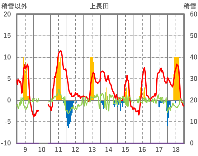 | 日 | 時 | 気温 | 降水 | 風向/風速 | 日照 | 積雪 | 降雪 |