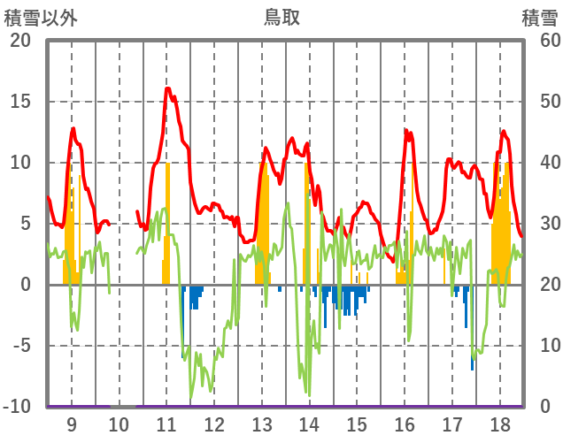 | 日 | 時 | 気温 | 降水 | 風向/風速 | 日照 | 積雪 | 降雪 |