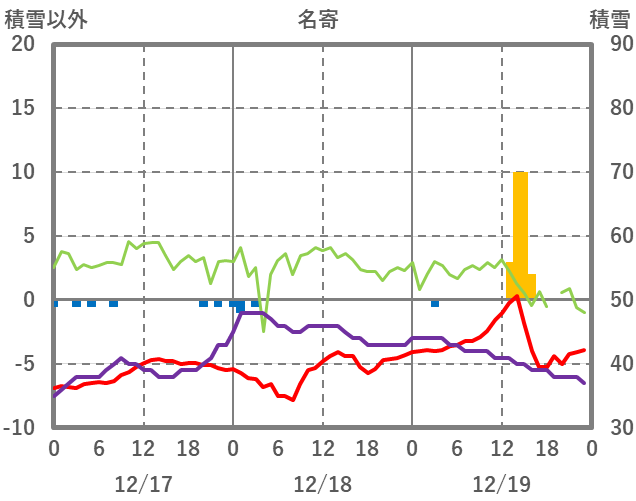 | 日 | 時 | 気温 | 降水 | 風向/風速 | 日照 | 積雪 | 降雪 |