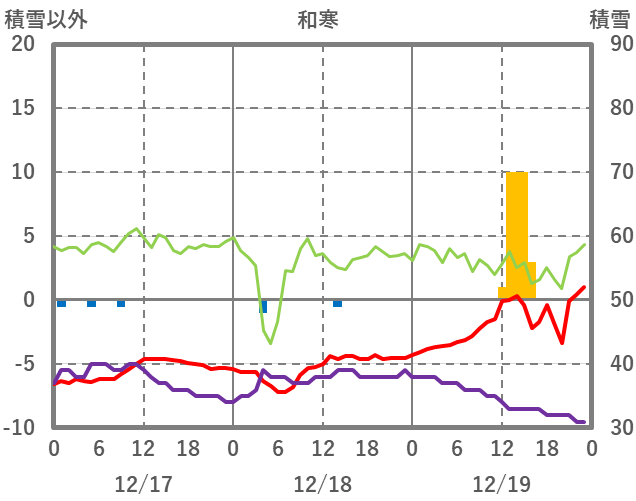 | 日 | 時 | 気温 | 降水 | 風向/風速 | 日照 | 積雪 | 降雪 |