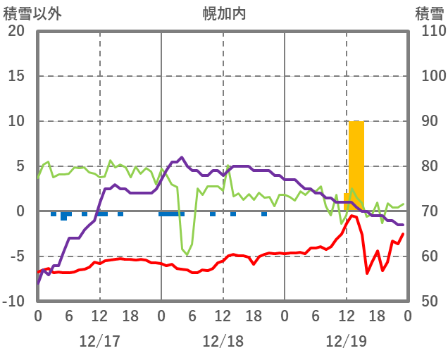 | 日 | 時 | 気温 | 降水 | 風向/風速 | 日照 | 積雪 | 降雪 |