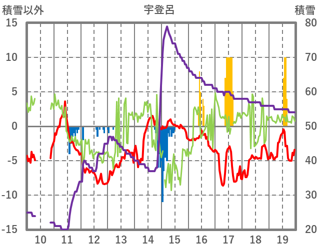 | 日 | 時 | 気温 | 降水 | 風向/風速 | 日照 | 積雪 | 降雪 |