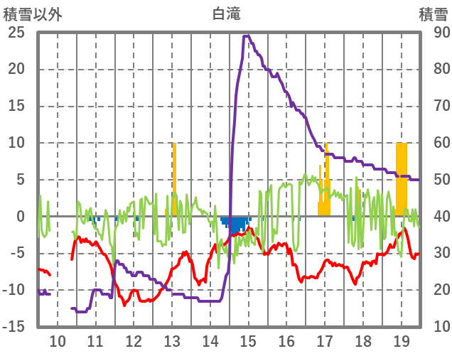 | 日 | 時 | 気温 | 降水 | 風向/風速 | 日照 | 積雪 | 降雪 |