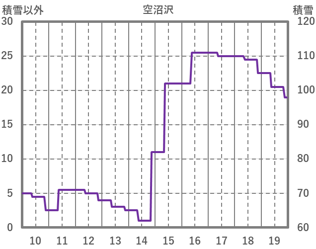 | 日 | 時 | 気温 | 降水 | 風向/風速 | 日照 | 積雪 | 降雪 |