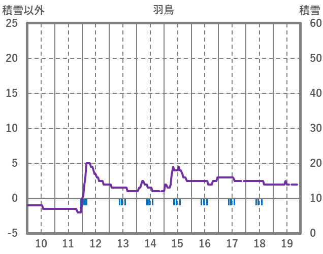 | 日 | 時 | 気温 | 降水 | 風向/風速 | 日照 | 積雪 | 降雪 |