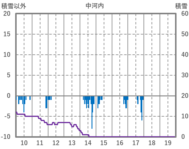 | 日 | 時 | 気温 | 降水 | 風向/風速 | 日照 | 積雪 | 降雪 |