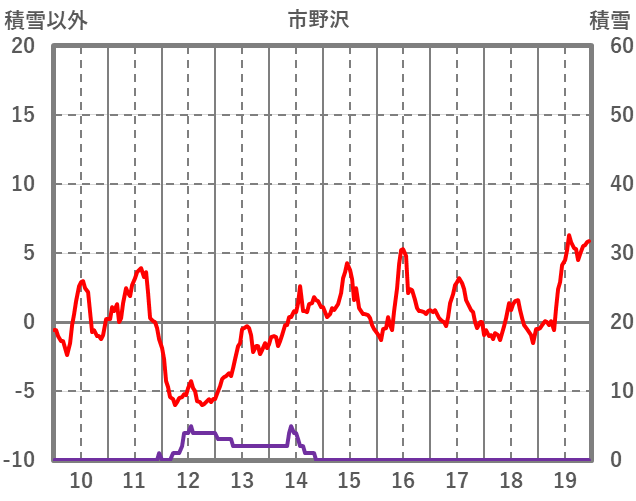 | 日 | 時 | 気温 | 降水 | 風向/風速 | 日照 | 積雪 | 降雪 |