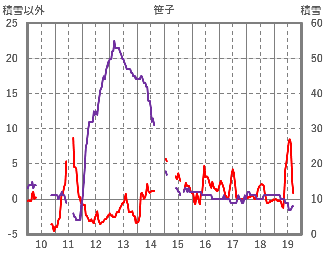 | 日 | 時 | 気温 | 降水 | 風向/風速 | 日照 | 積雪 | 降雪 |