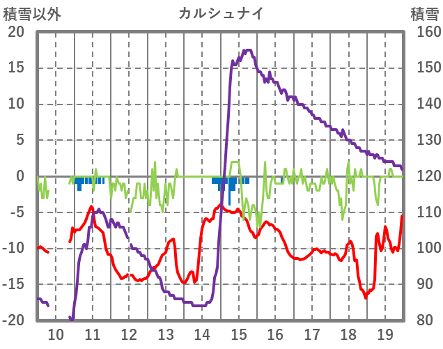 | 日 | 時 | 気温 | 降水 | 風向/風速 | 日照 | 積雪 | 降雪 |
