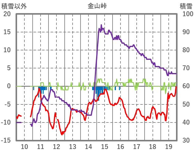 | 日 | 時 | 気温 | 降水 | 風向/風速 | 日照 | 積雪 | 降雪 |