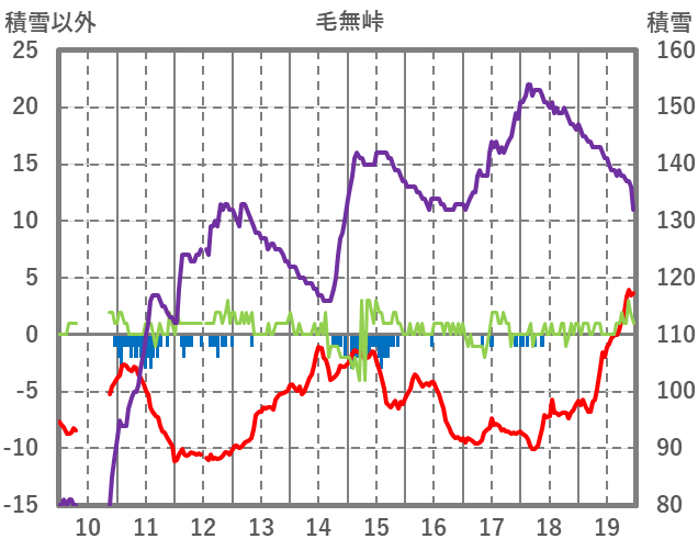 | 日 | 時 | 気温 | 降水 | 風向/風速 | 日照 | 積雪 | 降雪 |