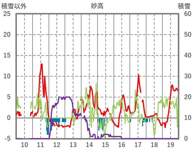 | 日 | 時 | 気温 | 降水 | 風向/風速 | 日照 | 積雪 | 降雪 |