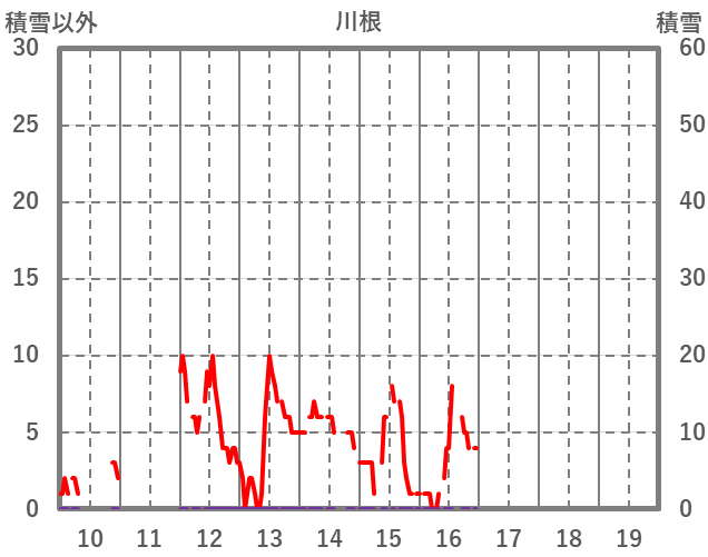 | 日 | 時 | 気温 | 降水 | 風向/風速 | 日照 | 積雪 | 降雪 |