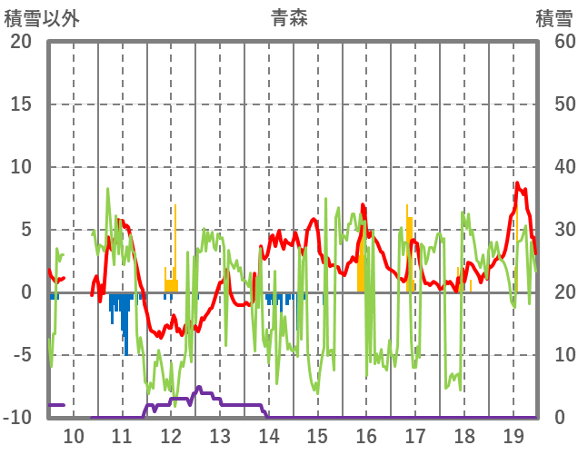 | 日 | 時 | 気温 | 降水 | 風向/風速 | 日照 | 積雪 | 降雪 |