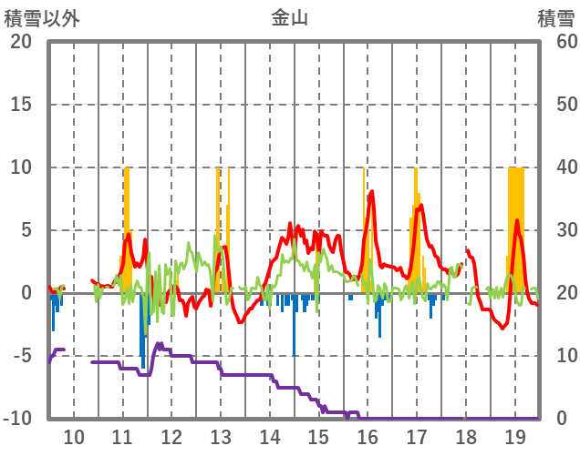 | 日 | 時 | 気温 | 降水 | 風向/風速 | 日照 | 積雪 | 降雪 |