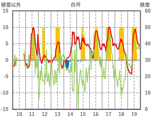 | 日 | 時 | 気温 | 降水 | 風向/風速 | 日照 | 積雪 | 降雪 |