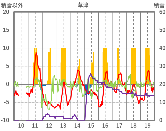 | 日 | 時 | 気温 | 降水 | 風向/風速 | 日照 | 積雪 | 降雪 |