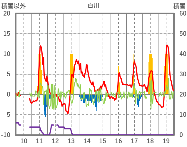 | 日 | 時 | 気温 | 降水 | 風向/風速 | 日照 | 積雪 | 降雪 |