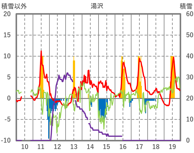 | 日 | 時 | 気温 | 降水 | 風向/風速 | 日照 | 積雪 | 降雪 |