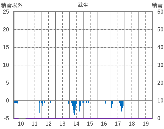 | 日 | 時 | 気温 | 降水 | 風向/風速 | 日照 | 積雪 | 降雪 |