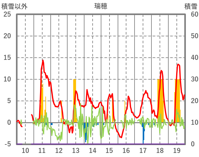 | 日 | 時 | 気温 | 降水 | 風向/風速 | 日照 | 積雪 | 降雪 |