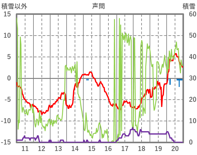 | 日 | 時 | 気温 | 降水 | 風向/風速 | 日照 | 積雪 | 降雪 |