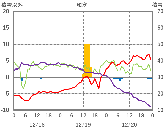 | 日 | 時 | 気温 | 降水 | 風向/風速 | 日照 | 積雪 | 降雪 |