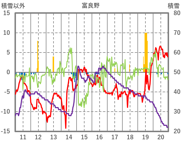 | 日 | 時 | 気温 | 降水 | 風向/風速 | 日照 | 積雪 | 降雪 |